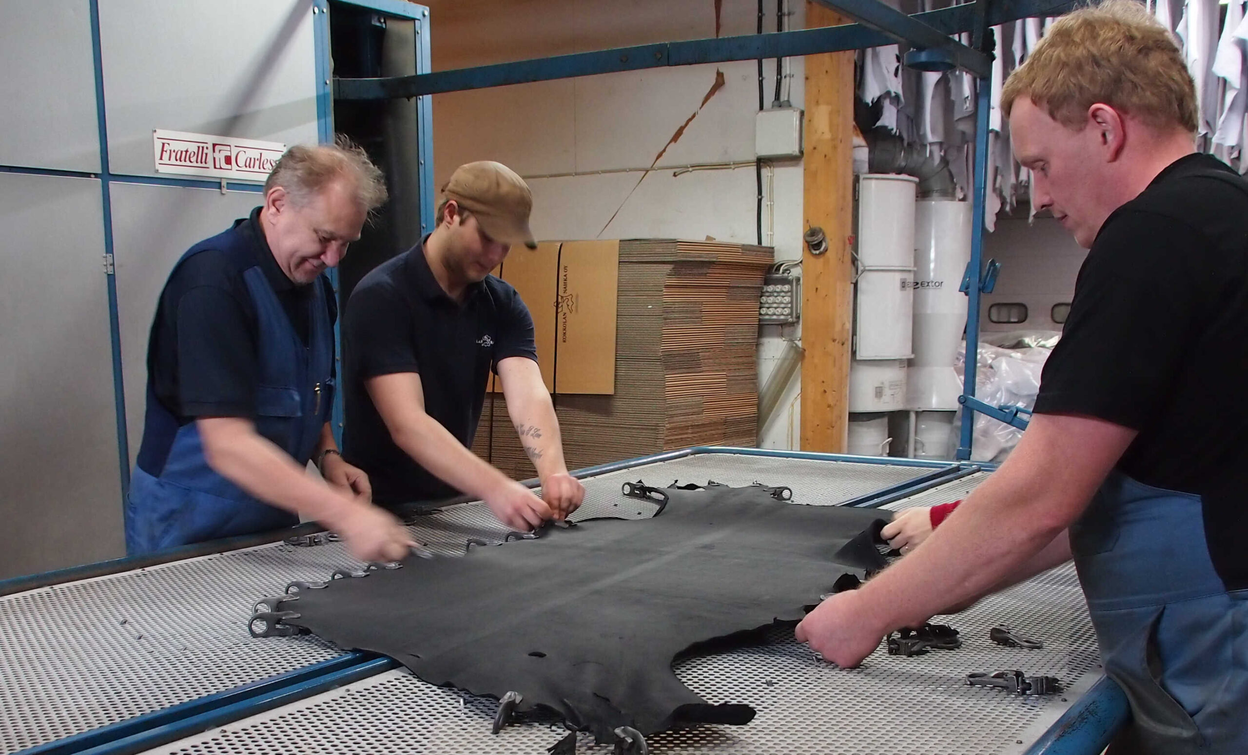 Das Elchleder wird in einer kleinen finnischen Gerberei gegerbt und gefärbt und anschließend zur Weiterverarbeitung an unsere Manufaktur in Thüringen geschickt. Hier erfolgt das Zuschneiden, Kleben und Nähen, sowie das Aufbringen der Komponenten – alles mit großer Sorgfalt und, wie es sich für ein exklusives Naturprodukt gehört, größtenteils in Handarbeit.